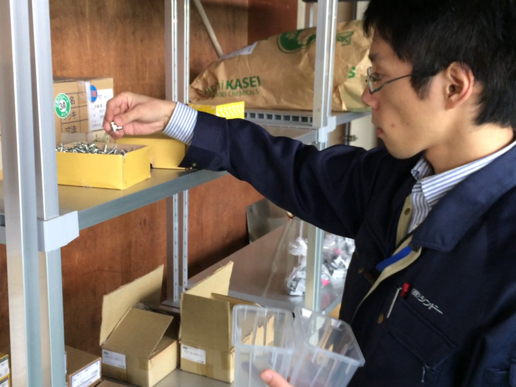 それから、樹脂部材やネジ、ナット等を部材置き場から集めてきます。