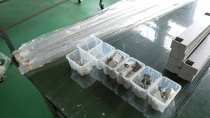 サイズや数量をキチンと確認し、小さな部品についてはミニコンテナを使用して分別します。
